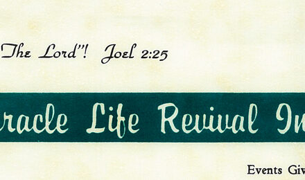 Miracle Life Revivals inc. | Evangelist Neal Frisby | Events Given 1960-1966 – Released 1967 “I will restore saith the lord!” Joel 2:25 I write this...